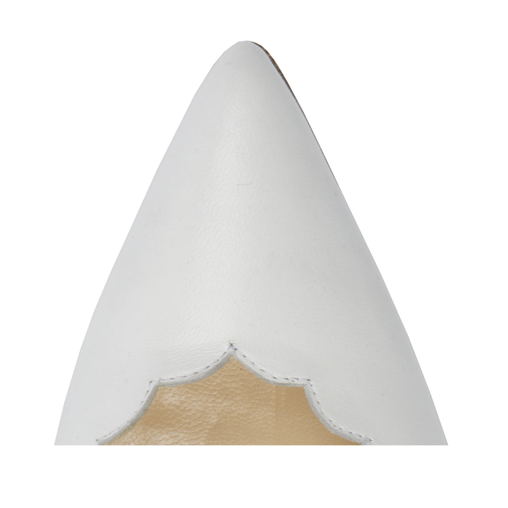 Be the envy of the office with these scalloped-edged, white leather, luxuriously-constructed pumps. On everyone's wish-list. Heel measures 120mm/ 4.7 inches.